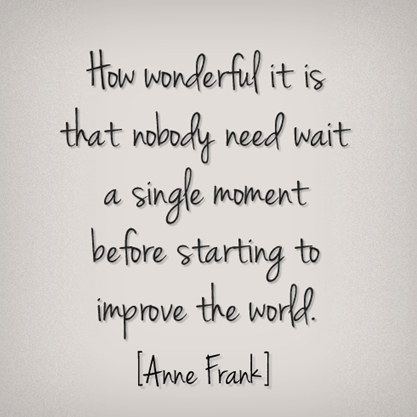 How wonderful it is that nobody need wait a single moment before starting to improve the world  -- Anne Frank